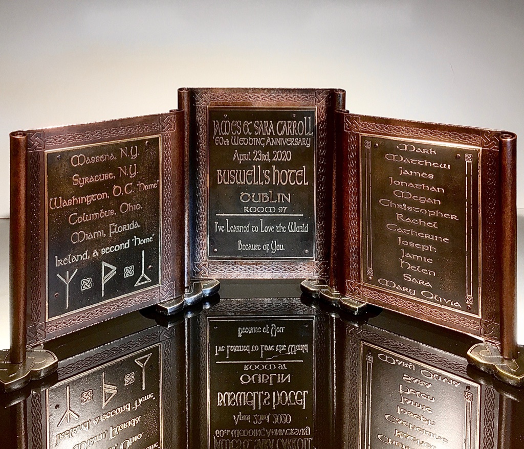 A local artist approached me with a story from his & his wife’s journey together; romance, marriage, children, grandchildren and a place forever in their hearts to anchor the story. Using images, script, names & symbols, the artist & I came up with a narative to celebrate this extraordinary 60 year story.