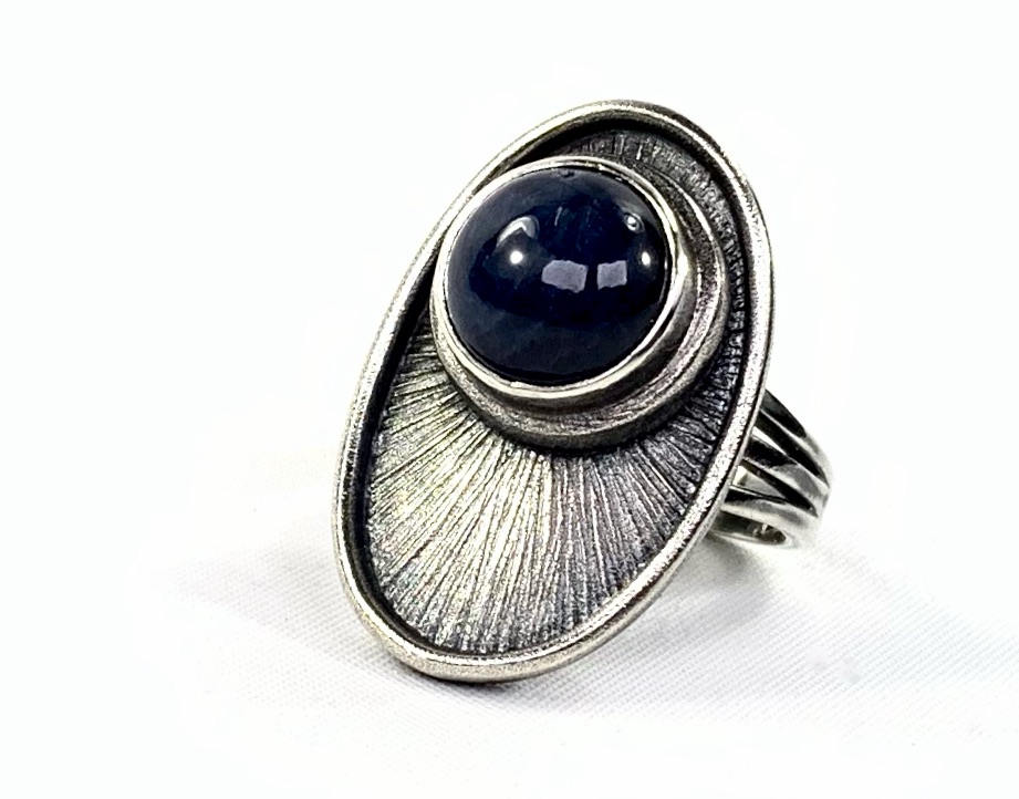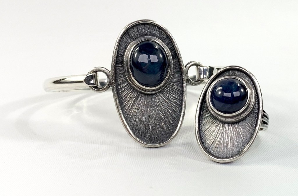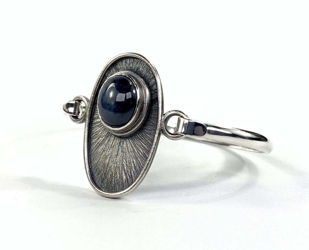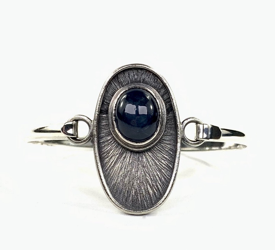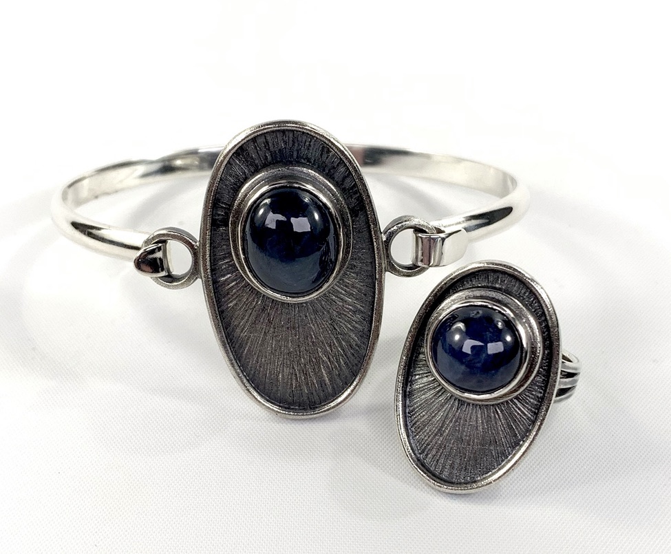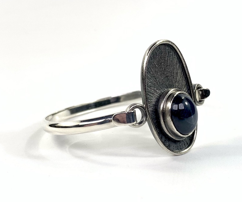 CUSTOMERS BLUE STAR SAPPHIRES & 925 CUFF, SET INTO 925 FORGED/FABRICATED BEZEL/FRAME/THREE TINE RING SHANK.