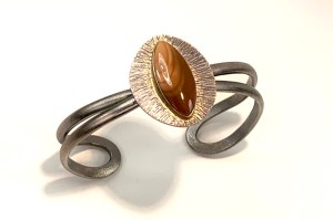 CUSTOMERS 22KY GOLD & 925 SILVER, FORGED/FABRICATED BEZEL/FRAME & CUFF WITH BRUNEAU JASPER CUT BY HORIZON MINERALS (JOE JELKS)