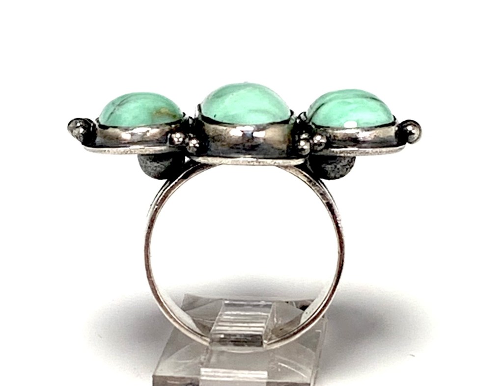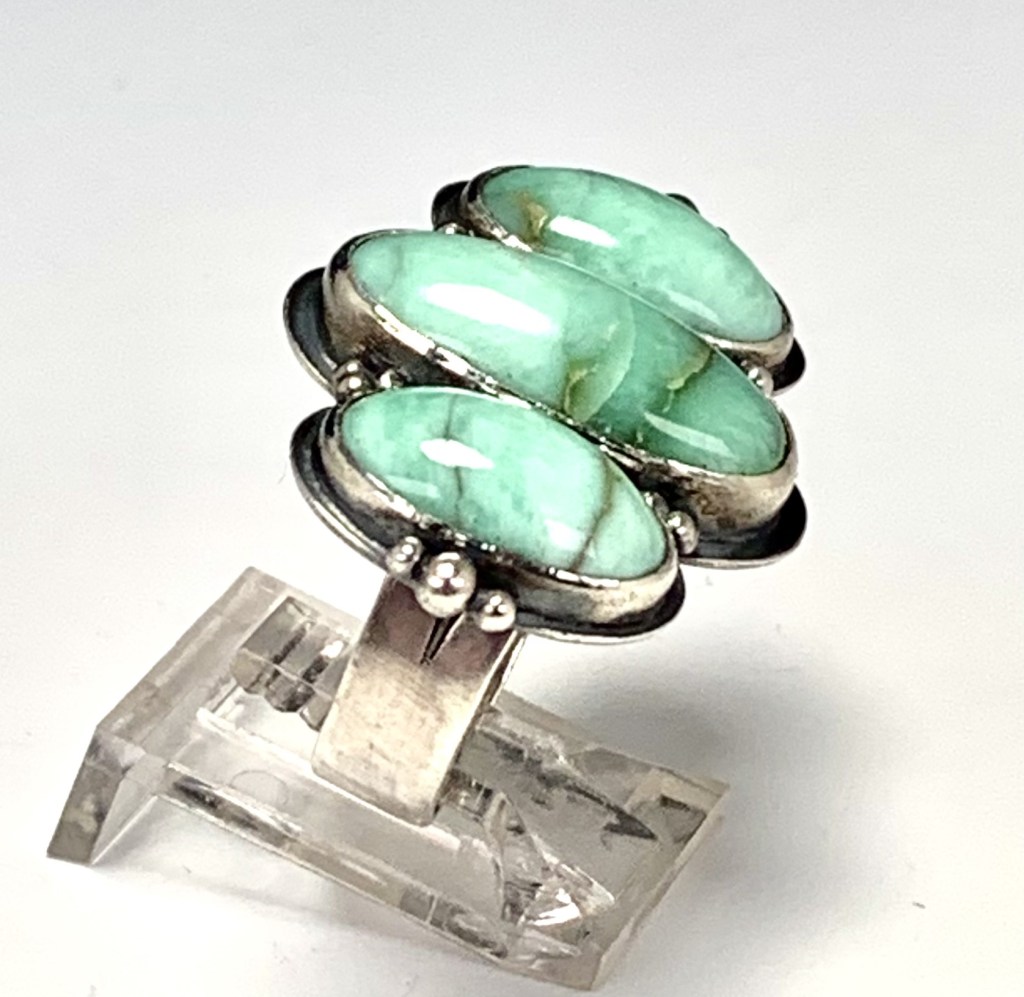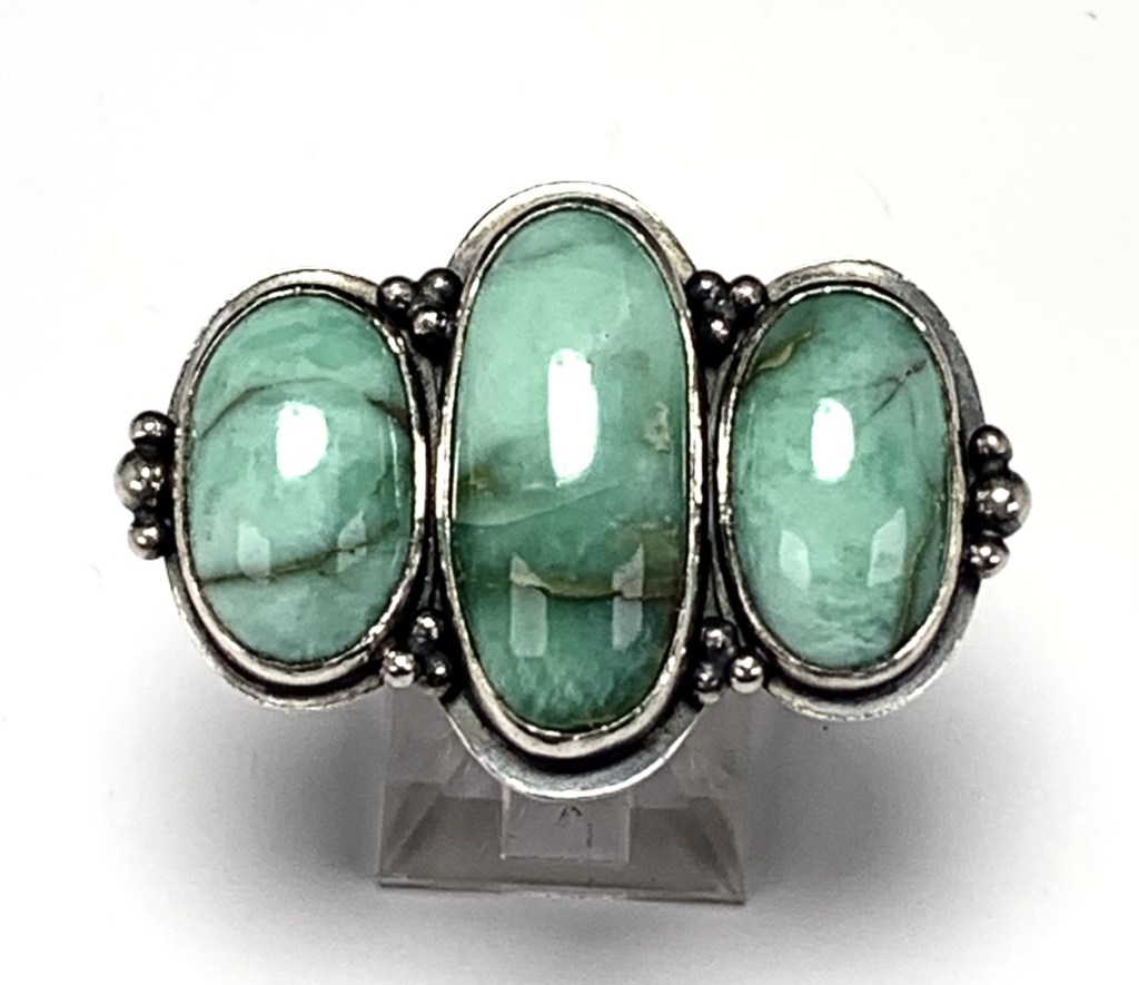 Customers Turquoise beads, cabochon cut beautifully by Matt DeMulder and set in a traditional bezel & plate style. Sterling silver.