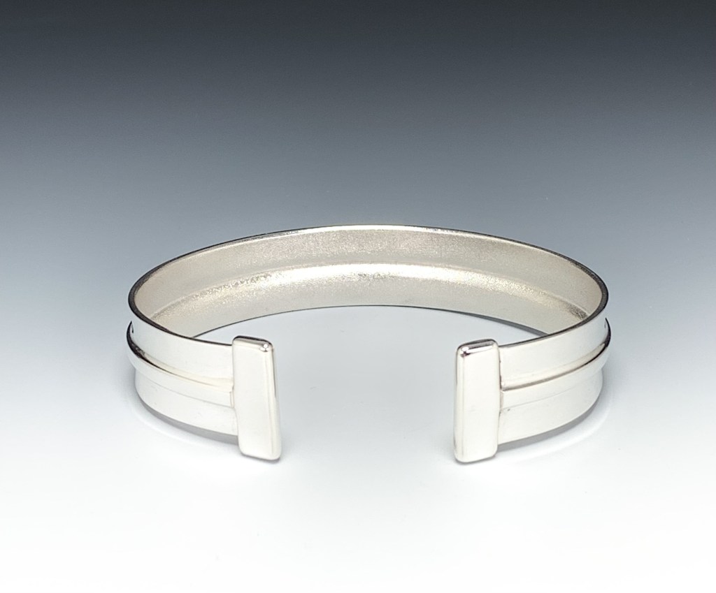 Single Line Fold Cuff in sterling silver – brushed interior, mirror finish exterior.
