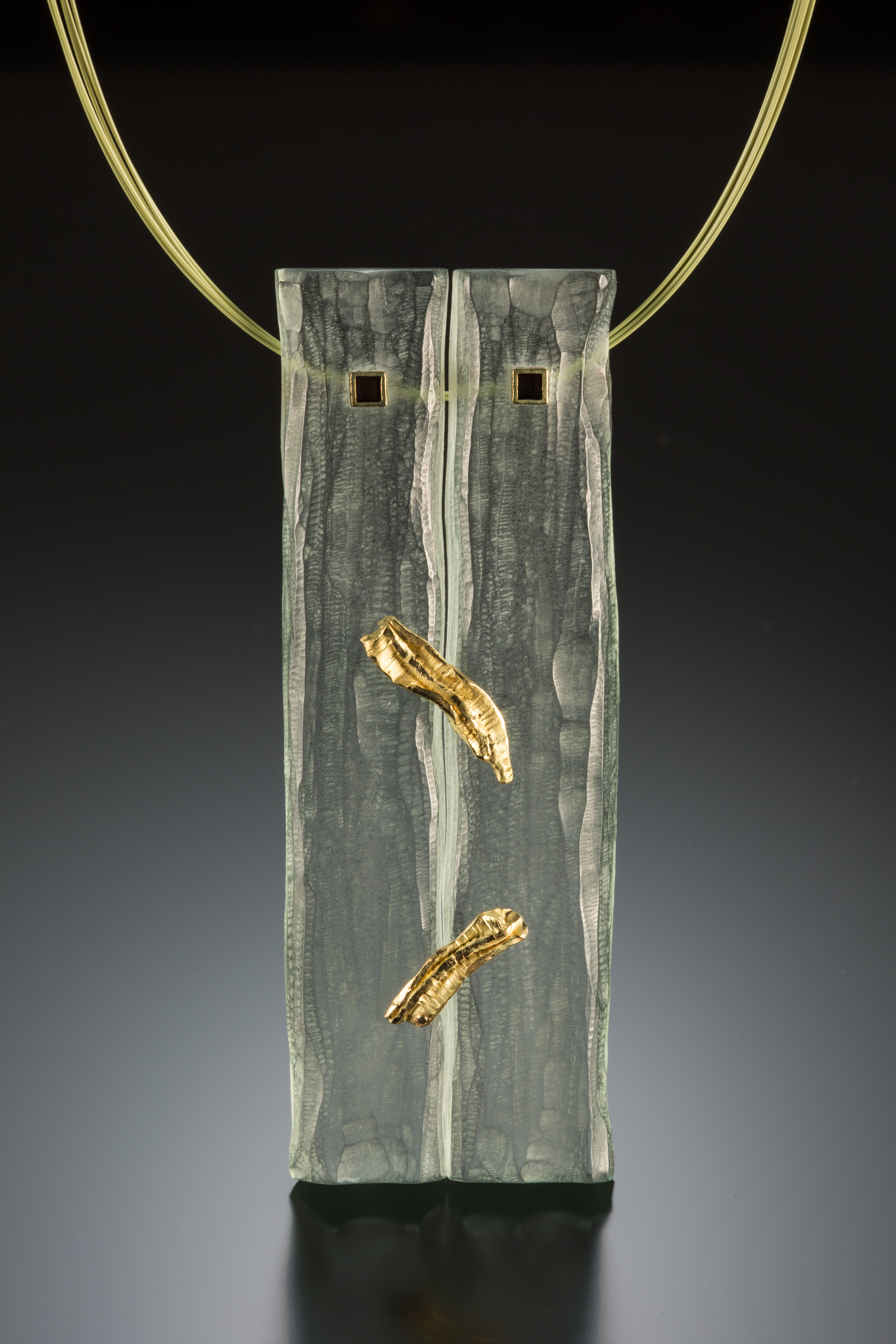 Nick Grant Barnes – what you see is what you get – pendent detail – 2014 Image by david terao materials – Acrylite satin ice/18k/sterling bi-metal brass/steel/carved/fabricated 86mm x 30mm x 8mm