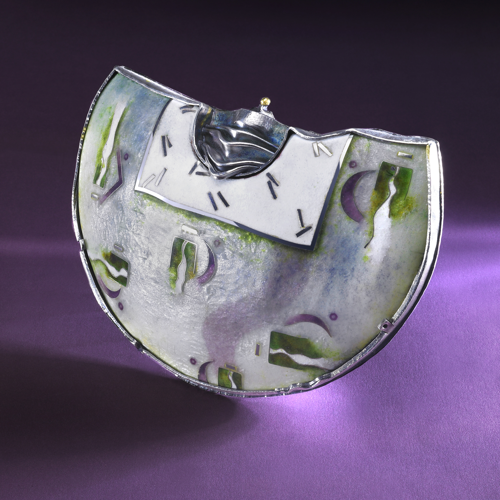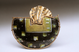 Day two – Abby explored more in-depth enamel techniques, which opened students palette up to using foils; cloisonné wire; silver shot; eutectic silver as well as bronze wire mesh to both fold; form and enamel.